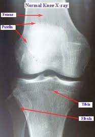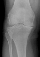 The x-ray above shows reduced joint space between the tibia and the femur in the medial tibio-femoral compartment.
