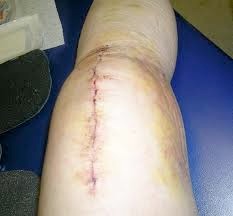 The operation involves a straight incision over the knee cap and replacing the cartilage of the knee with metal cap over the femur and tibia. These metal knee components are usually cemented in place and have a plastic liner/ insert in between. Sometime the knee cap also has a plastic cap cemented over it’s joint surface.