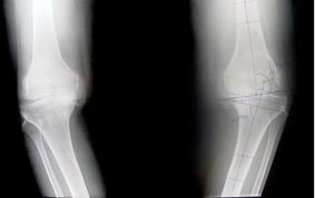 When a surgeon looks at your x-rays he is looking for reduced joint space (thinning of the cartilage covering), extra new bone formation (osteophytes), bone cyst formation and thickening of the bone underneath the joint surface (subchondral sclerosis). These are all radiological signs of osteoarthritis. He will also be looking at the quality of your bone, the alignment of your leg and for any evidence of bone loss in severe deformities.